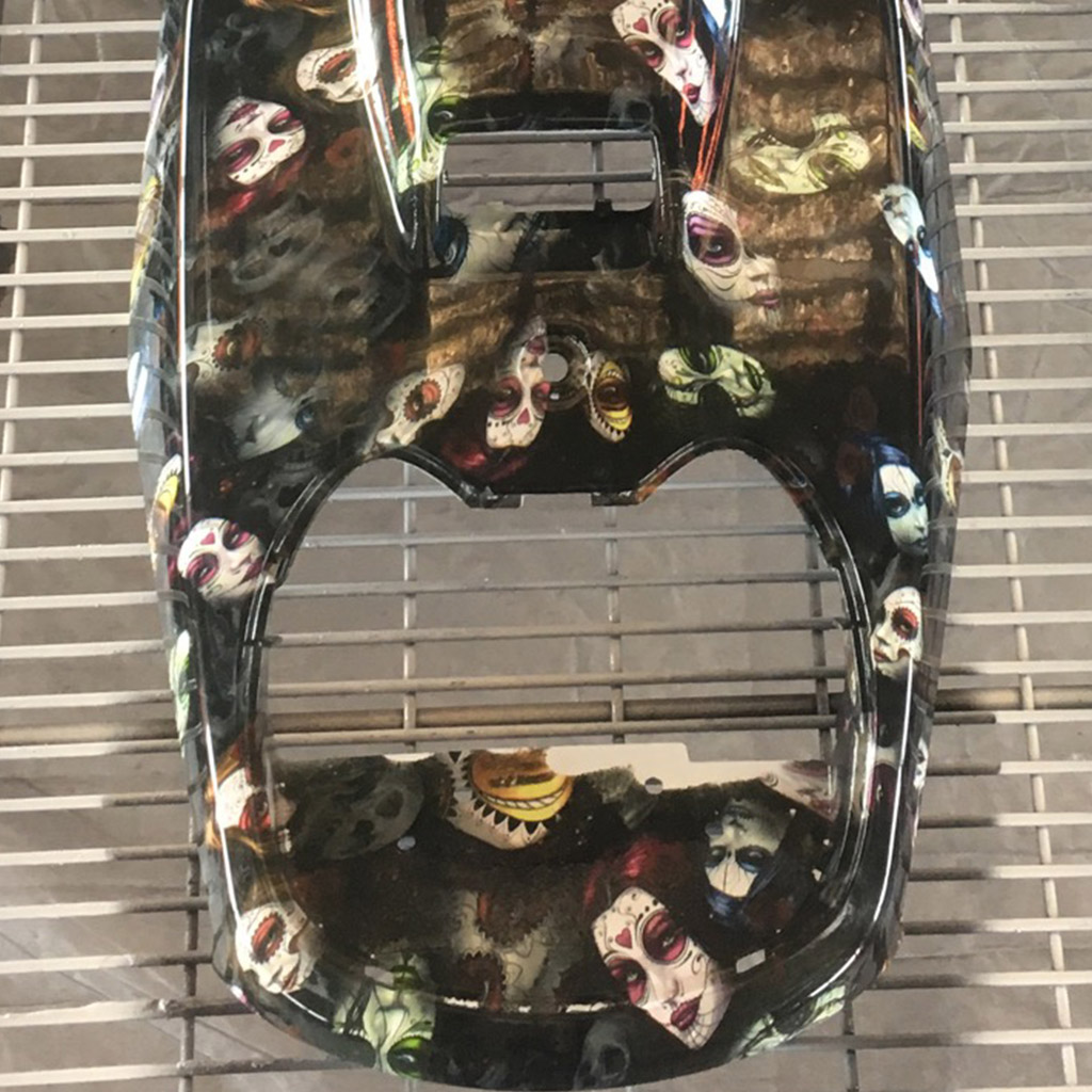 Hydro-dipping is also known as water transfer imaging and immersion printing, it is a process of applying print designs to 3D objects with the use of liquid. It can be used on almost any substrate, such as wood, plastic, glass, and metal. Unlimited potential.